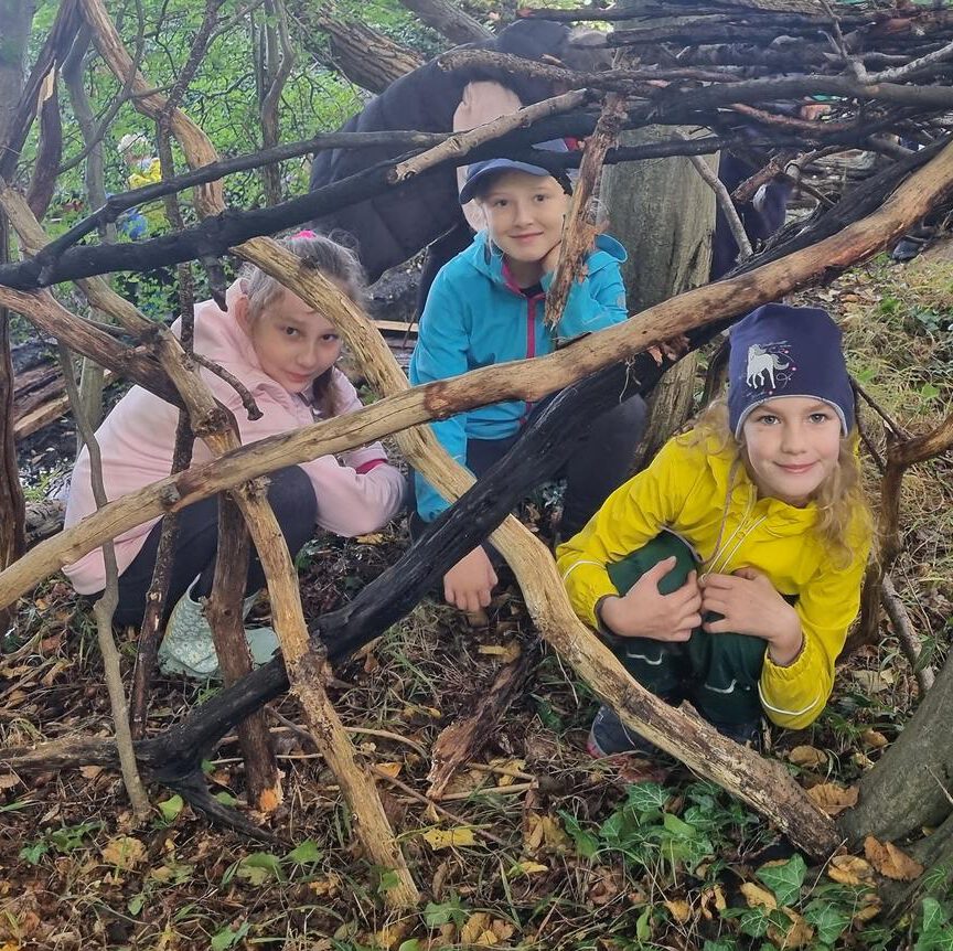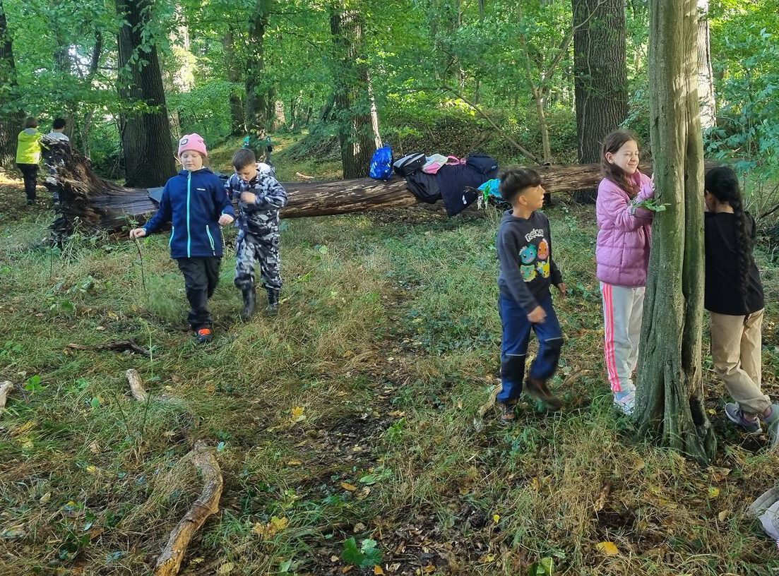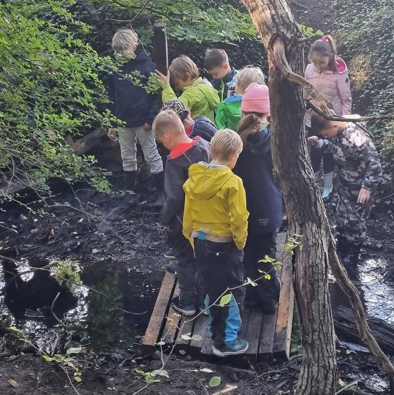 Die Klassen 3a und 3b haben sich mit Becherlupen und wetterfester Kleidung auf den Weg in den Wald gemacht. Zuerst wurden die Baumarten bestimmt. Dann konnten mit den Becherlupen zahlreiche Tiere beobachtet werden. Eine Teamübung verlangte genug Mut, um sich im Wald mit geschlossenen Augen führen zu lassen. Zum Schluss durfte im Wald gespielt werden. So entstand auch eine Brücke über den Bach, die uns den kürzeren Heimweg zur Schule möglich machte!