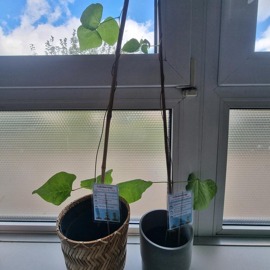 Die Kinder der Klasse 3a haben zum Schuljahresanfang ein besonderes Geschenk bekommen: eine Feuerbohne! Natürlich wurde die dann auch groß gezogen. Die letzten Wochen sind die Bohnen dann so langsam der Lamaklasse über den Kopf gewachsen.